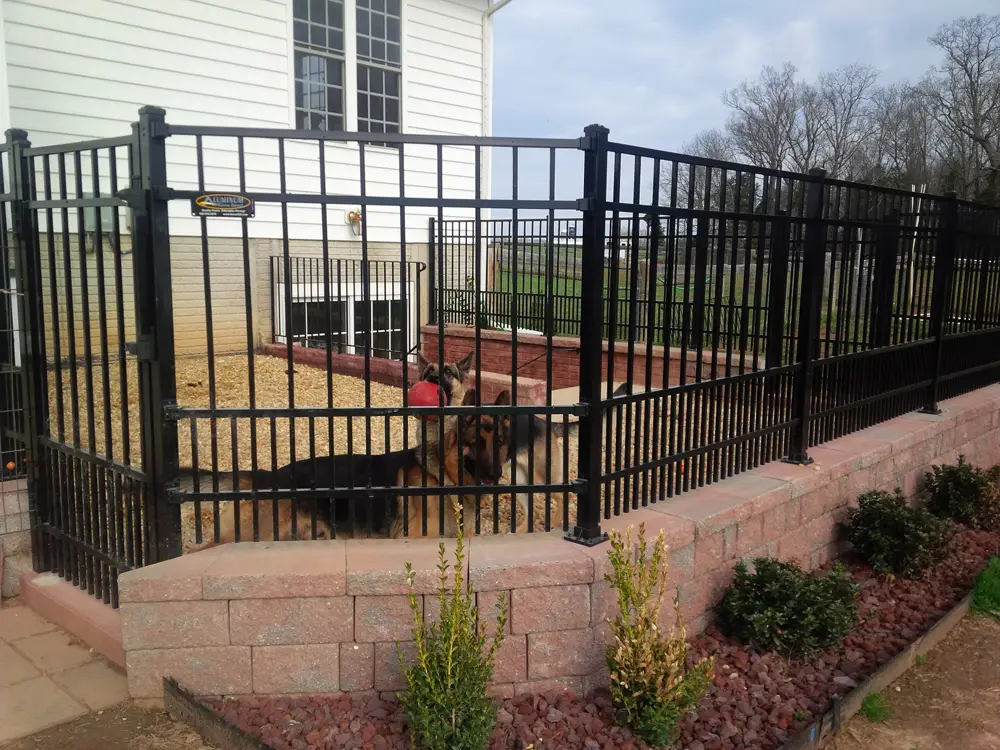 “Puppy fence” is an industry term. This is a style of aluminum fence that’s designed to keep most pets from being able to leave the yard. Our aluminum puppy fences feature pickets positioned closely to one another at the bottom of the fence with wider gaps across the middle and top sections. This prevents small animals such as dogs from escaping through openings other fences may have. All of our residential styles are available in 6′ widths with a variety of heights, but are also highly customizable. So, if you have something specific in mind, let us know and we can spec it out for you.