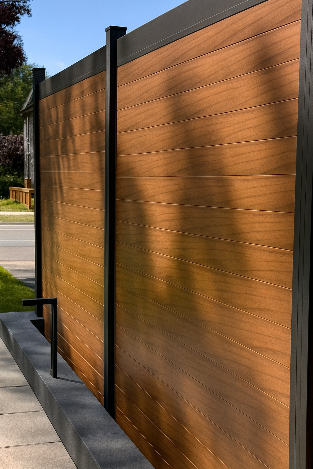Aluminum Privacy Fence w/ Woodgrain Image Gallery