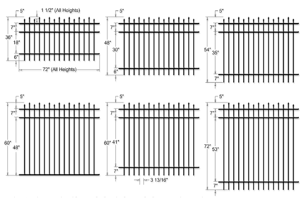 This classic fencing style comes in 36″, 48″, 60″, and 72″ heights. All of the styles are available in 6′ widths for all variety of heights.